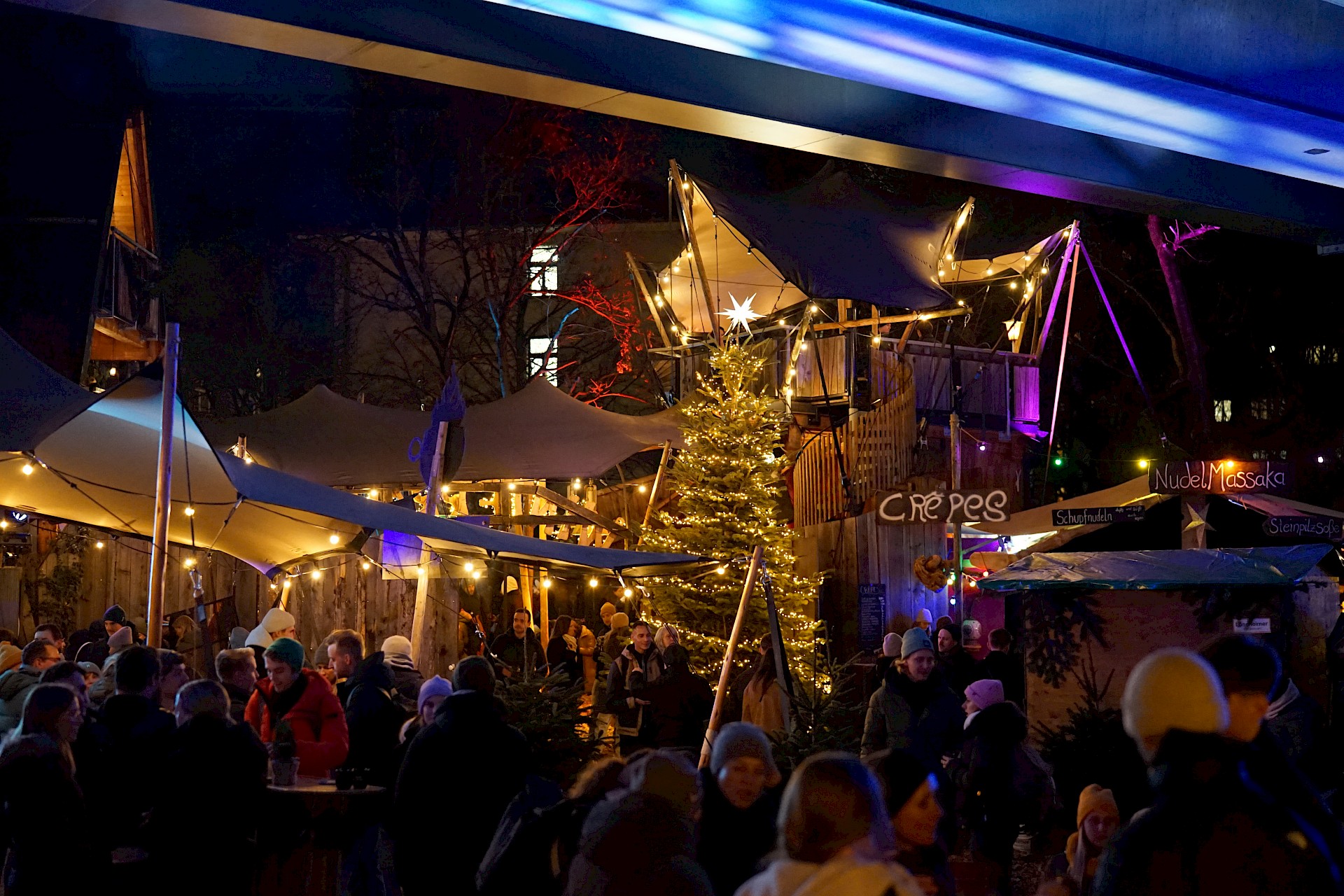 Eine Veranstaltung am Chinesischen Turm als Geheimtipp darzustellen mag albern wirken, doch ist der Weihnachtsmarkt am Chinesischen Turm, obwohl es ihn schon seit 1989 gibt, immer noch nicht im kollektiven Gedächtnis der Stadt angekommen. Der besonders romantische Markt, der noch am ehesten unter den Münchner Märkten an eine Waldweihnacht erinnert, erfreut sich dennoch wachsender Beliebtheit und hat 2025 ab 20. November jede Woche einen Tag länger geöffnet. Ruhetage sind nun nur noch die Montage und Dienstage. Wer überlaufene Märkte lieber meidet, kommt hier unter der Woche auf seine Kosten.
